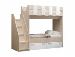 Кровать двухъярусная "Бемби-11" 0,8*1,8 м - Белый глянец / Ясень шимо светлый