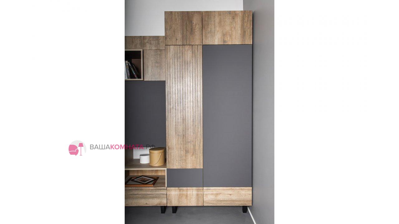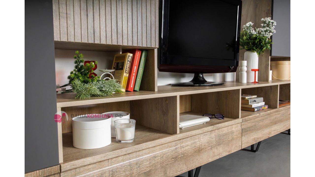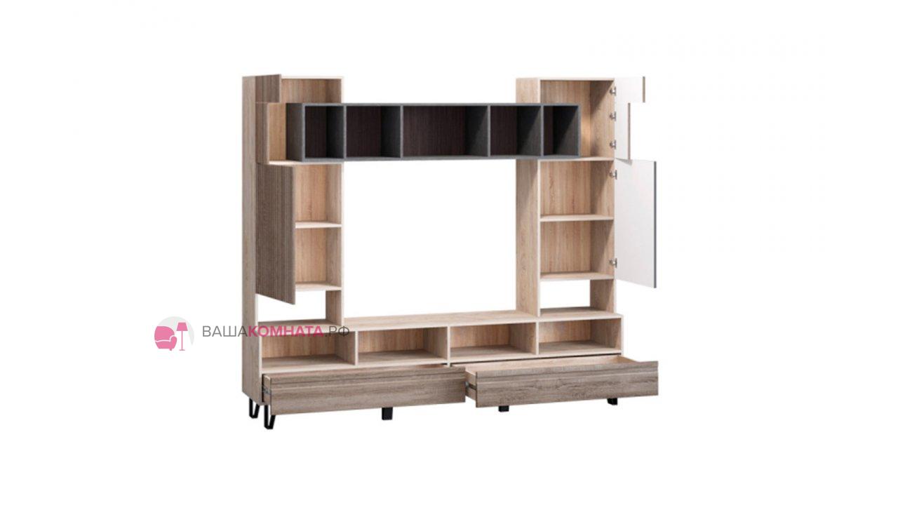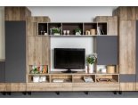 Модульная гостиная "Нота-28" - Дуб скандинавский бежевый+Графит / дуб эндгрейн+Ателье темный