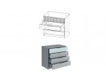 В комоде "Джерси" 4 ящика, оснащенных направляющими полного выдвижения – шариковые 450 мм (35мм) нагрузка на пару направляющих – 10 кг с учетом веса ящика.
