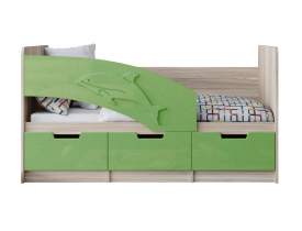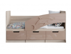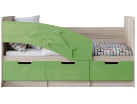 Кровать детская "Дельфин-2" 0,8*1,6 м - Красный металлик / Белый древесный