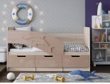 Кровать детская "Дельфин-6" 0,8*1,8 м - Латте глянец / Ясень шимо светлый (левый)