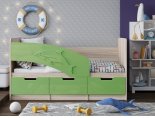 Кровать детская "Дельфин-6" 0,8*1,8 м - Салатовый металлик / Ясень шимо светлый (левый)
