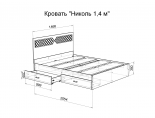 Кровать "НИКОЛЬ" 1,4*2,0 м с ящиками - Венге-Лиственница светлая