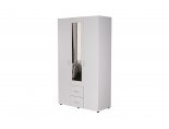 Шкаф разделен на две зоны для хранения. Слева располагаются четыре полки для хранения белья. Справа размещена металлическая штанга для хранения верхней одежды. Над штангой расположена полка. Центральная створка без ручки, открывается после открытия основной правой створки. В самом центре шкафа под створкой с зеркалом имеются два выдвижных ящика на роликовых направляющих глубиной 400 мм. Высота боковины ящика 138 мм. Максимально допустимая равномерно распределенная нагрузка на ящики до 8 кг.