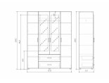 Корпус и фасад изготавливаются из ЛДСП 16мм и закромлены кромкой ПВХ толщиной 0,4 мм. На центральных створках наклеены зеркала с еврокромкой по периметру. Задняя стенка выполнена из ДВП простого толщиной 3,2мм. Полезная глубина шкафа 490 мм.