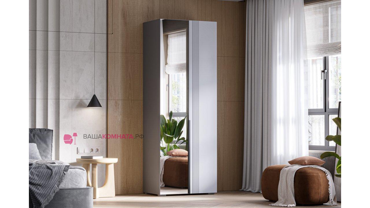 Шкаф "Альмерия" ШК-800 с зеркалом - Серый графит (ЛДСП) / Бархат серый (МДФ)