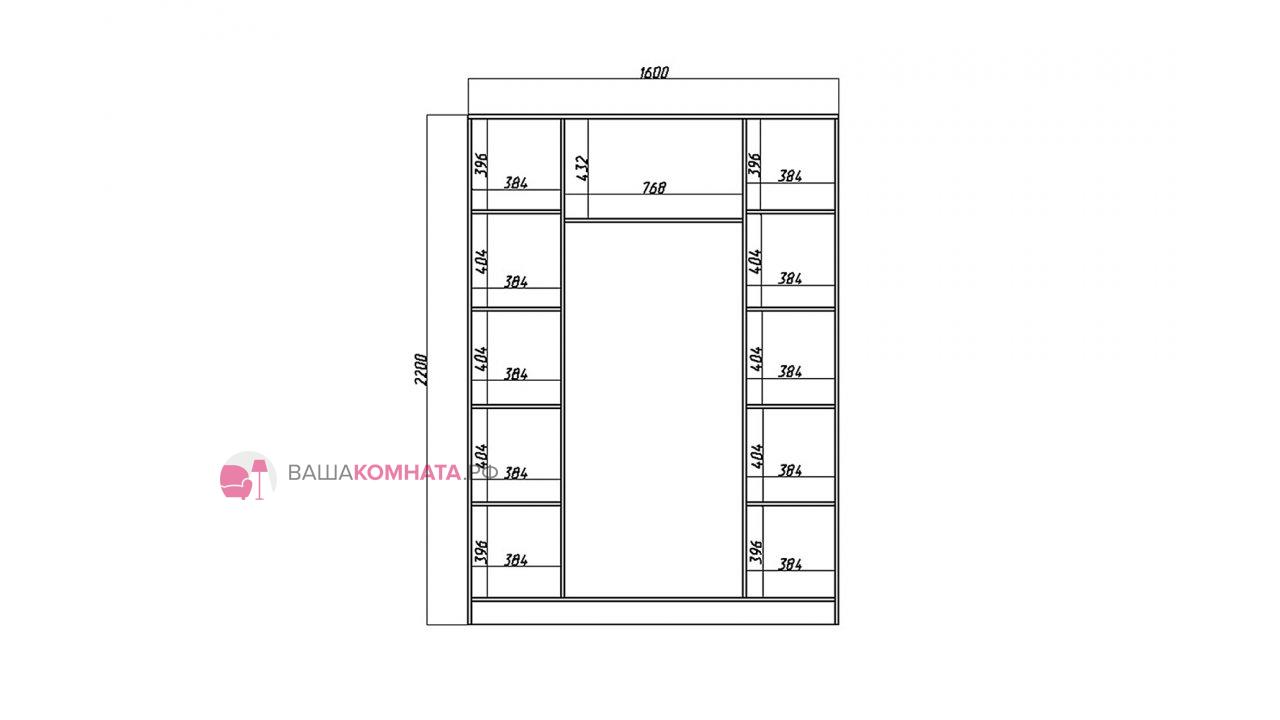 За двумя центральными дверьми находится широкая штанга для вешалок-плечиков с верхней одеждой, деловыми костюмами, красивыми платьями и другой одеждой. Полки, скрытые за боковыми дверьми, пригодятся для сложенной одежды, постельного и нижнего белья, разнообразных аксессуаров и коробок с обувью.