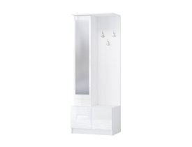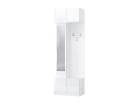 За двумя дверьми находится широкая штанга для вешалок-плечиков с верхней одеждой, деловыми костюмами, красивыми платьями и другой одеждой. Полки, скрытые за боковой дверью, пригодятся для сложенной одежды, постельного и нижнего белья, разнообразных аксессуаров и коробок с обувью.