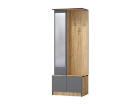 За двумя дверьми находится широкая штанга для вешалок-плечиков с верхней одеждой, деловыми костюмами, красивыми платьями и другой одеждой. Полки, скрытые за боковой дверью, пригодятся для сложенной одежды, постельного и нижнего белья, разнообразных аксессуаров и коробок с обувью.