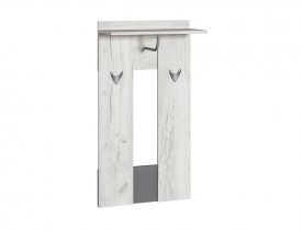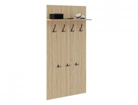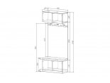 Средняя часть шкафа представляет собой Щит из ЛДСП – на двух врезных навесах. На щите располагаются три двойных крючка, цвет Чёрный, материал пластик. Расстояние до крючков: от пола – 1862 мм, от сидушки – 1333 мм. Габарит щита Д.900хВ.1256хГ.16 мм.