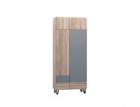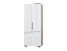 Это двустворчатая модель с распашными дверцами и двумя выдвижными ящиками внизу. Шкаф выполнен в современном стиле и имеет габаритные размеры. Доступная цена делает модель еще привлекательнее.