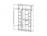 В центральной части шкафа расположена вязка для крепления к ней выдвижной вешалки. Выдвижная вешалка крепится и к верхней вязке. Ниши с вешалками равнозначные по габаритному размеру Д.600хВ.943хГ.426 мм.