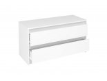 Лицевая фурнитура на тумбе отсутствует. Ящики открываются с помощью захвата рукой.